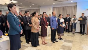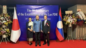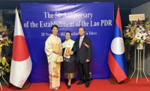 その記念のセレモニーがラオス大使館で行われ、国光外務副大臣が祝辞を申し上げました。
